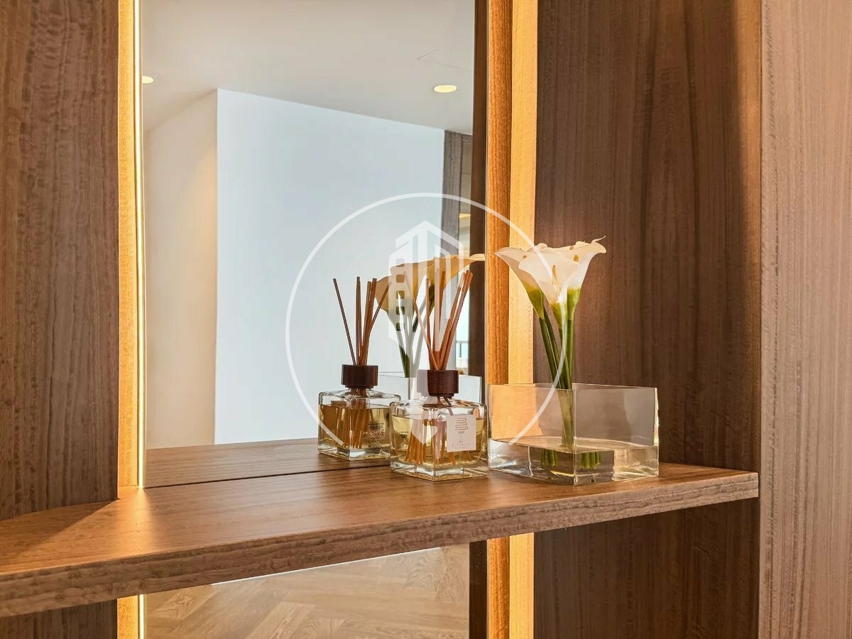 L’ampia zona giorno e pranzo è concepita con un design open space e colpisce per le finestre a tutta altezza, che creano un’atmosfera straordinariamente luminosa e accogliente. Eleganti porte scorrevoli in vetro conducono alla terrazza privata, permettendo una transizione fluida tra spazi interni ed esterni. L’esposizione sud-est offre una vista panoramica mozzafiato e libera sul Mar Mediterraneo.