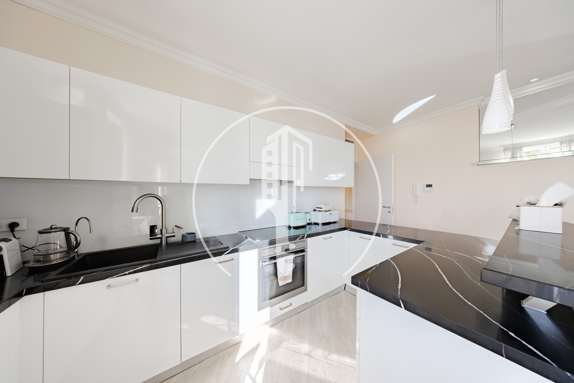 L'appartamento è composto da un atrio d'ingresso con bagno per gli ospiti, un ampio soggiorno con sala da pranzo davanti, oltre a una spaziosa cucina completamente attrezzata, aperta sulla zona pranzo.