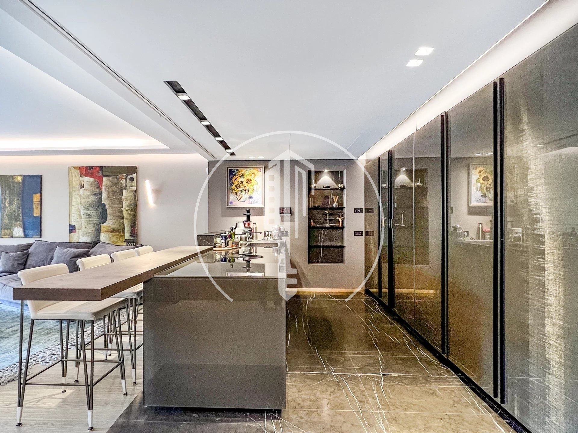 L'appartamento dispone di un ingresso che conduce a un luminoso doppio soggiorno con sala da pranzo. Una splendida cucina a vista è completamente attrezzata con elettrodomestici di alta gamma. Il soggiorno e la sala da pranzo danno accesso a una loggia.