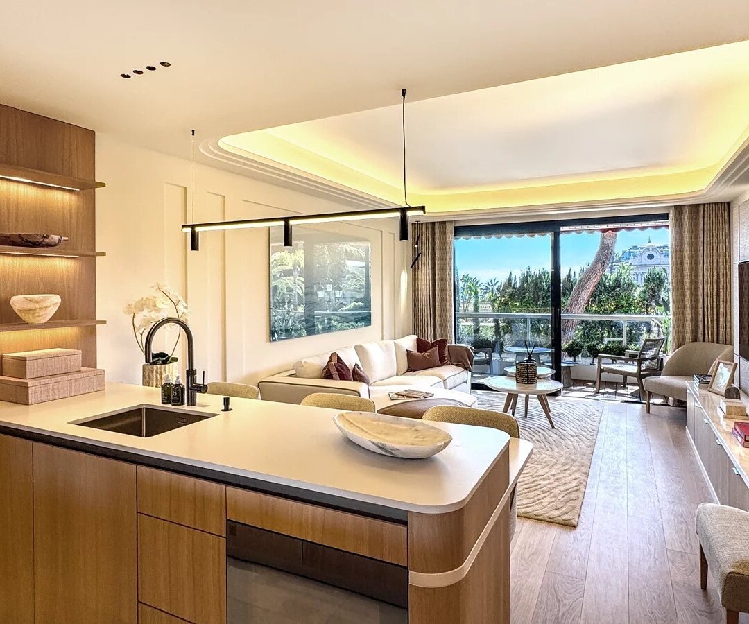 Entrando, scoprirai un elegante atrio d'ingresso che si apre su un lussuoso soggiorno, con una cucina open space Bulthaup. Il soggiorno si apre su una terrazza paesaggistica con vista sulla Place du Casino. Gli arredi raffinati sono arricchiti da splendidi lavori in legno su misura.