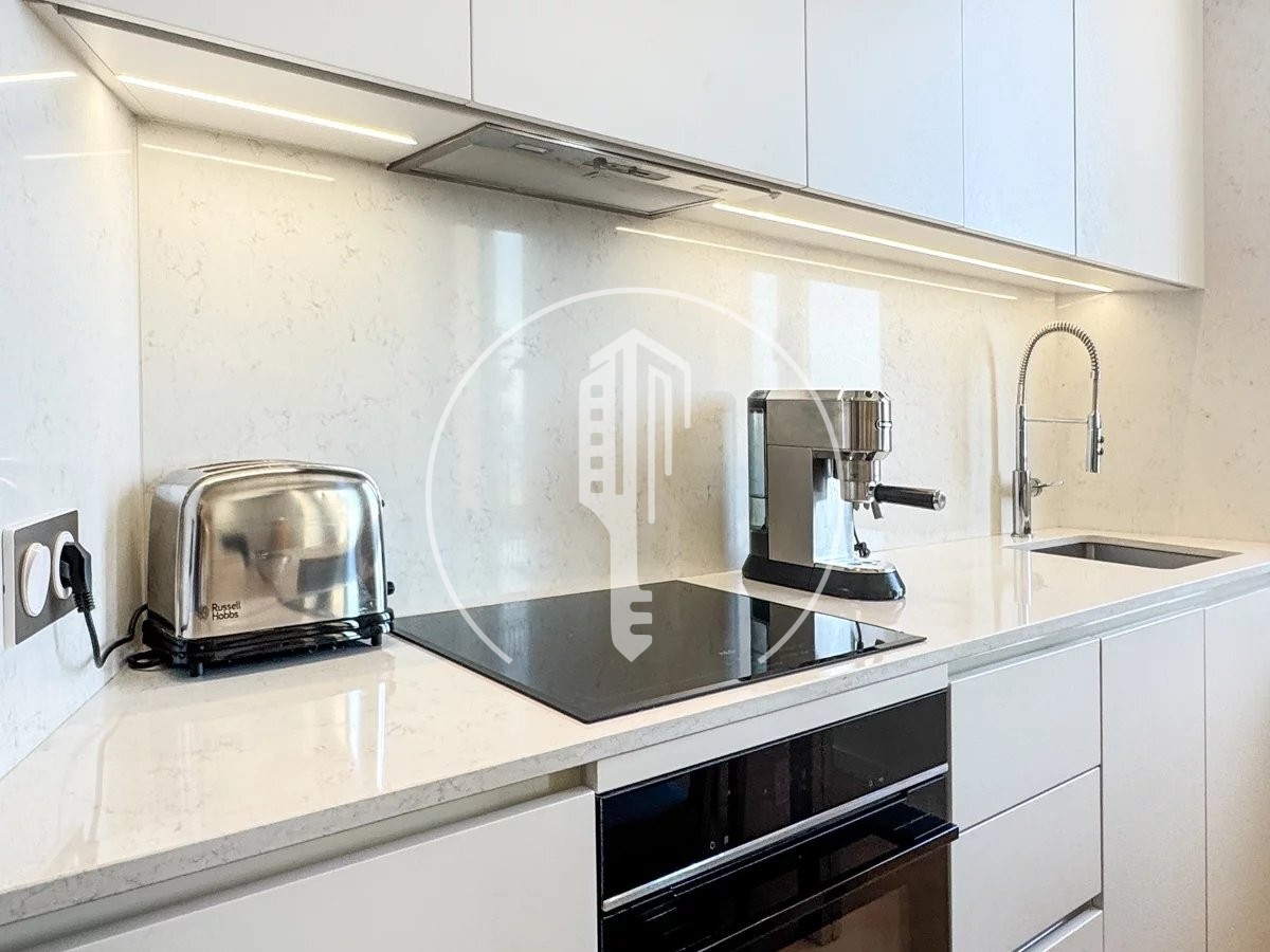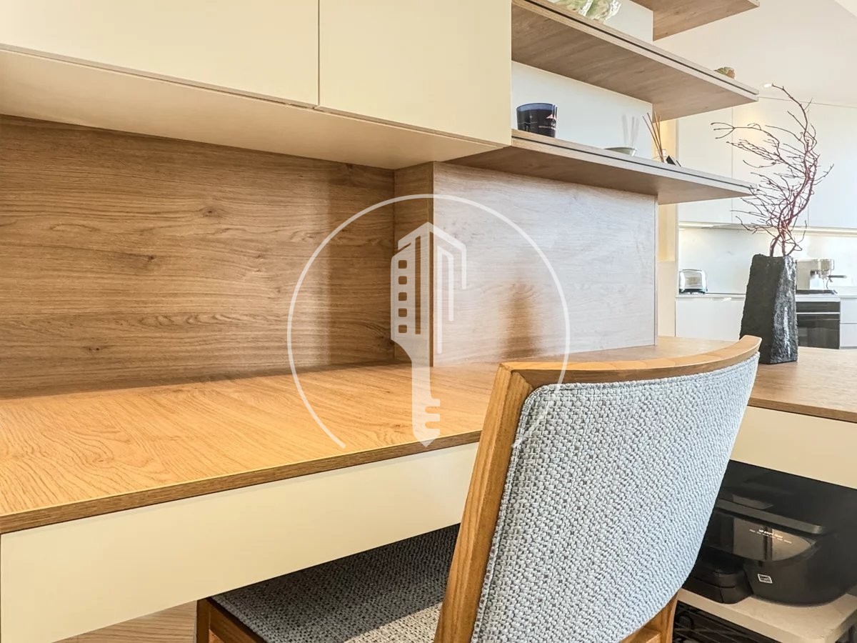 La superficie abitabile comprende un accogliente ingresso, un luminoso soggiorno con un piccolo angolo ufficio e una cucina aperta completamente attrezzata. L’appartamento dispone inoltre di una confortevole camera da letto con vista mare e di un moderno bagno con doccia adiacente. Una bella terrazza con una magnifica vista sul mare completa questa interessante proprietà.