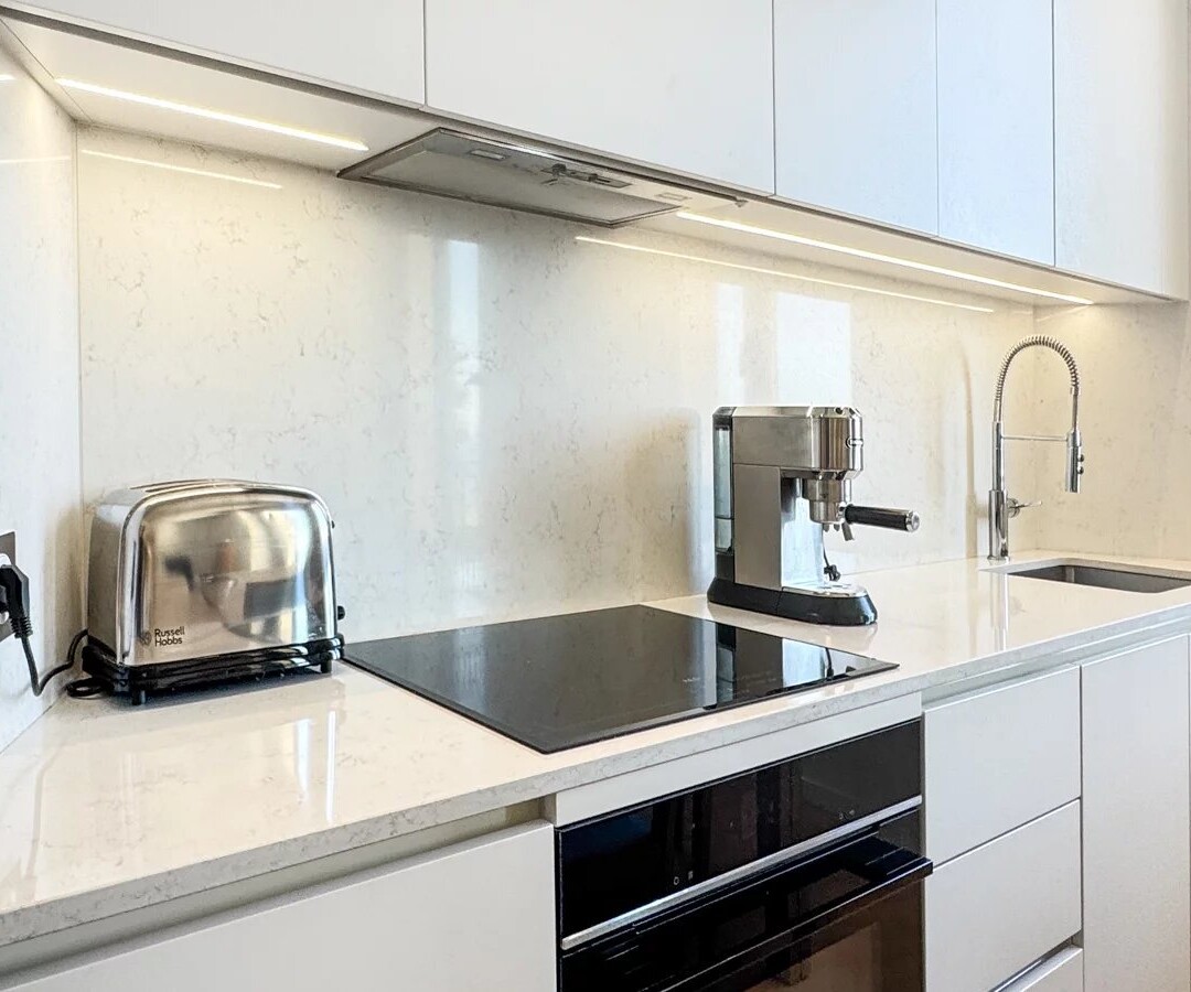 L’appartamento dispone di un accogliente ingresso, di una luminosa zona giorno con un piccolo ufficio, di una cucina a vista completamente attrezzata, di una camera da letto con bagno con doccia en suite, oltre a una splendida terrazza.