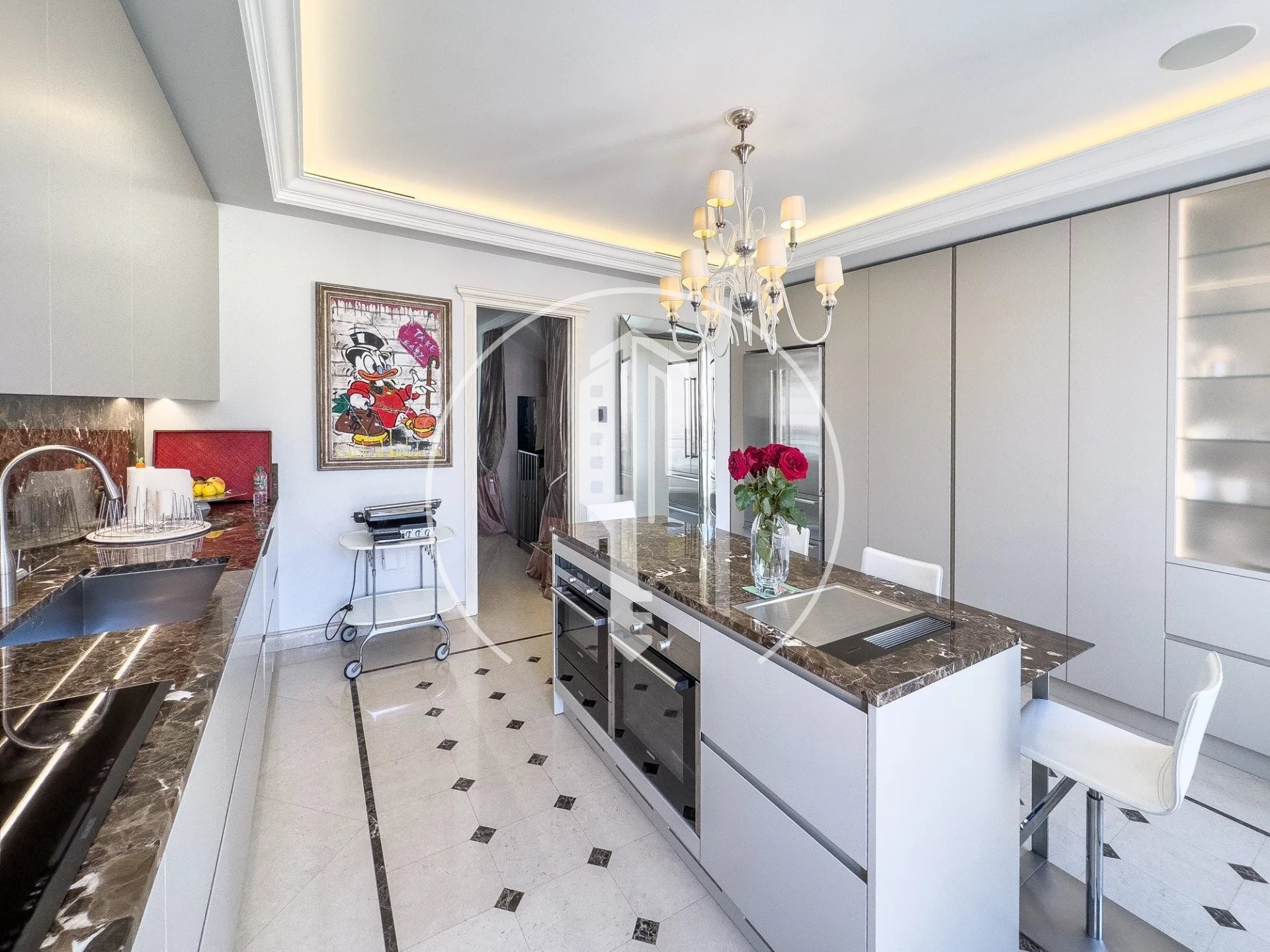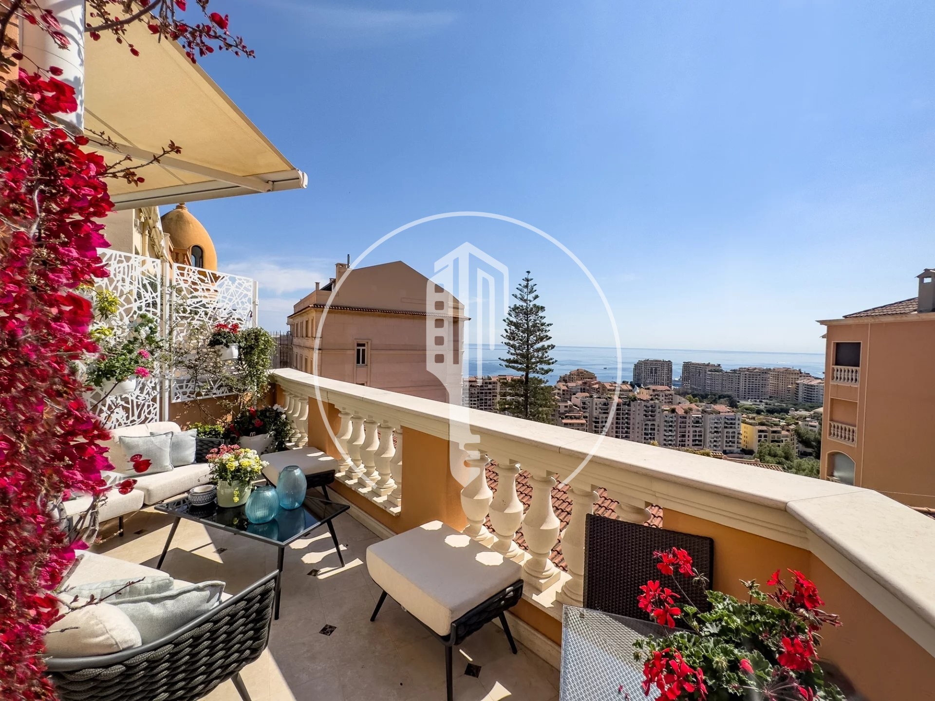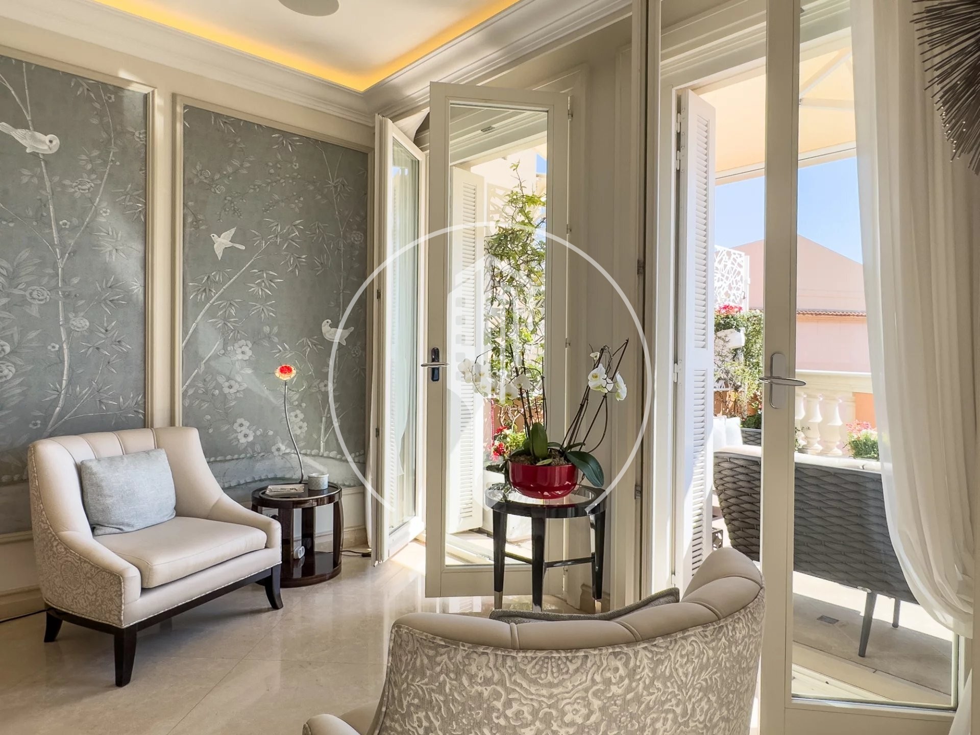 - Al 5° piano: un superbo e luminoso salone, perfetto per leggere o intrattenere gli ospiti, con 1 terrazza che si affaccia sul Palais Princier, e un giardino d'inverno separato.