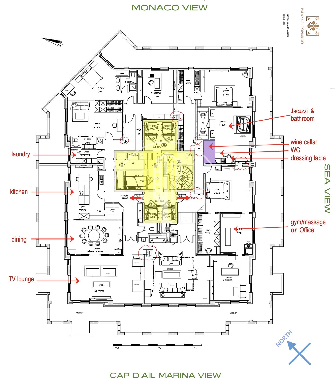 Attualmente è composto da un vasto salone triplo, 6 camere da letto e 4 bagni. Esiste la possibilità di una ristrutturazione completa per personalizzare lo spazio secondo i propri gusti.